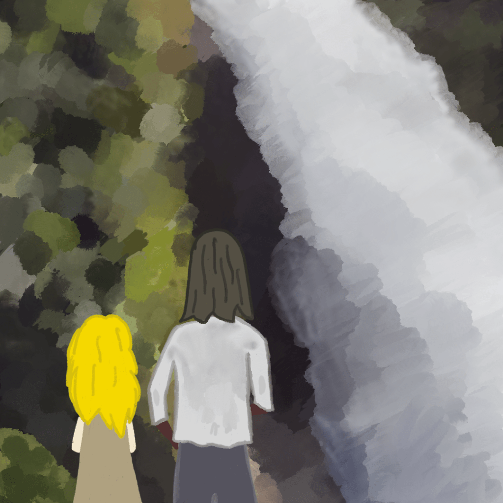 Mientras más se acercaban más sentían el impacto del agua queriéndolos empujar hacia el vacío. Tomados de las manos y pensado en poner un pie y luego soltar el otro, se atrevieron a prepararse a brincar cuando el agua les mostrara la apertura.