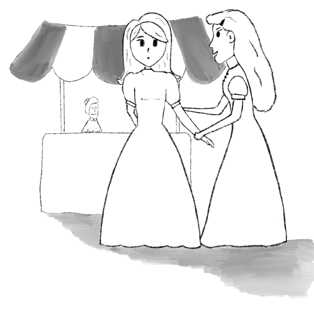 Como el castillo no iba a abrirse, por lo menos ellos creían que la nueva reina escogida lo iba a abrir por primera vez; decidieron hacer la celebración en la plaza del pueblo. Los jardineros del reino fueron invitados a decorar con flores del mismo jardín del castillo para que todos sintieran que estuvieran dentro del palacio.