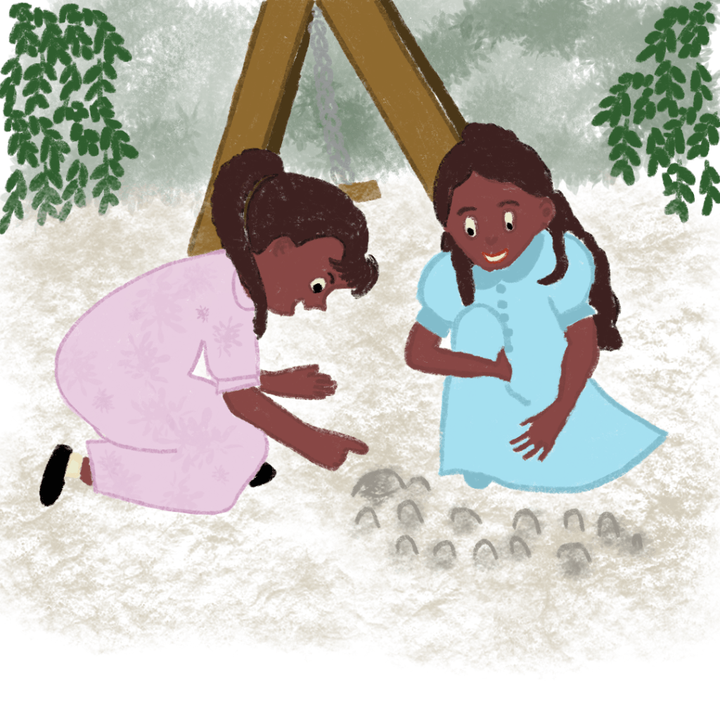 Los niños se sentaron en el piso y comenzaron a hacer una gran ciudad de montañas de tierra. “Ahí es el palacio, ahí vives tú”, dijo la niña de ojos soñadores mirando a la princesita.